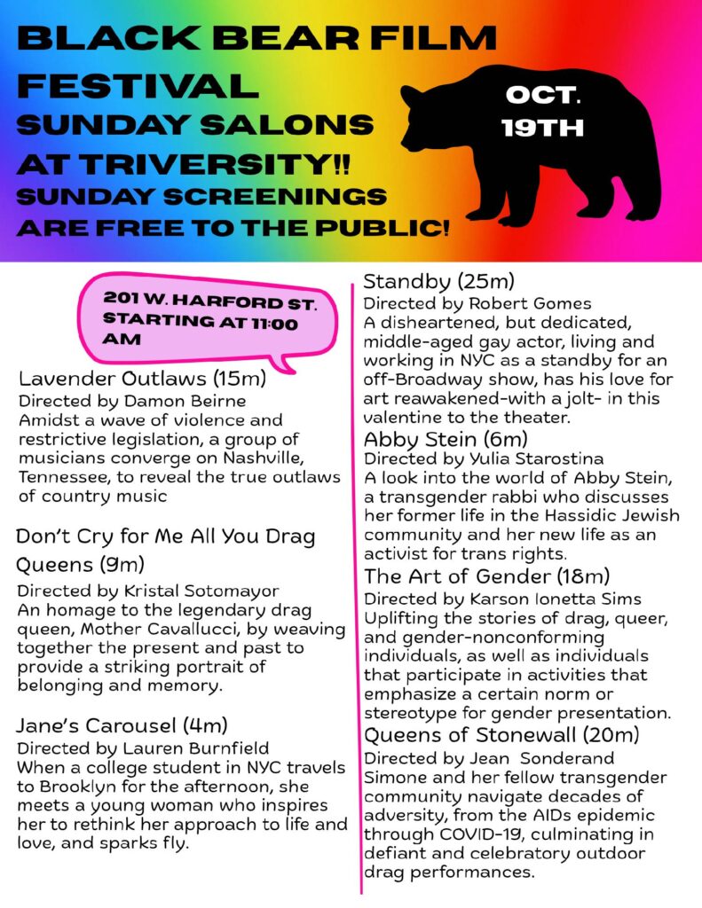 Join your Friends from TriVersity at one of this years Black Bear Film Festival’s Sunday Film Salons Featuring Beautifully Crafted Stories of the